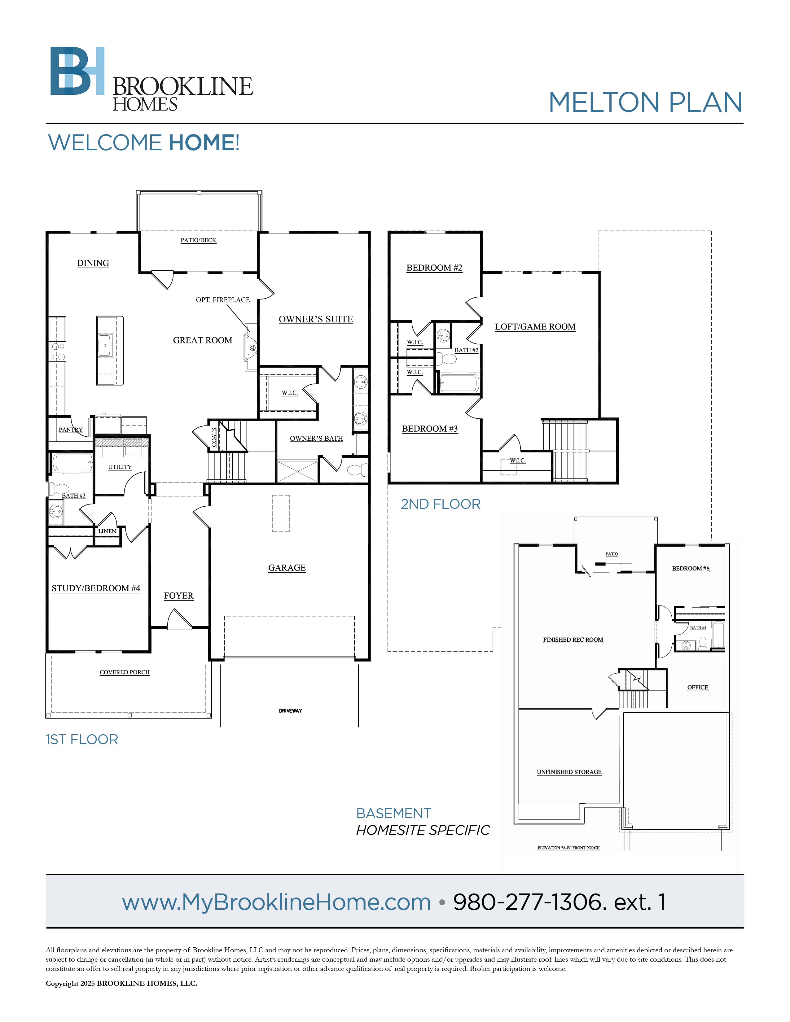 Starting in the mid $400's! The Melton plan is our craftsman-style two-story 4 bedroom, 3 bathroom plan featuring Owner's Suite down living. The first floor features a chef-inspired Kitchen with quartz countertops that opens to the Great Room, Dining Room, and Patio entrance. The generous Owner's Suite is just off the Great Room and offers dual vanities and a large walk-in closet. Also included on the first floor is the Study/4th Bedroom and 2-car garage with direct access into the foyer and living spaces. Two secondary bedrooms and a large multi-purpose loft/bonus room are located upstairs. Both secondary bedrooms feature walk-in closets and share a full bath with a tub/shower combo.
